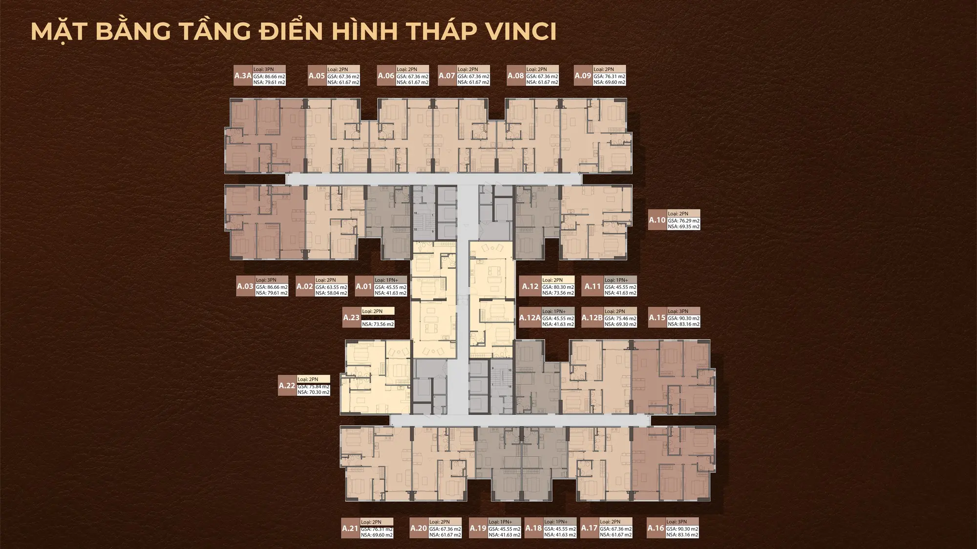 + Tháp Vinci: 27 tầng – 569 căn hộ